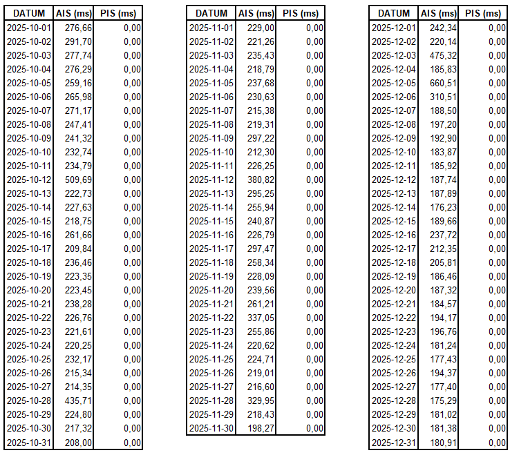 Dnevna statistika zmogljivosti namenskega vmesnika