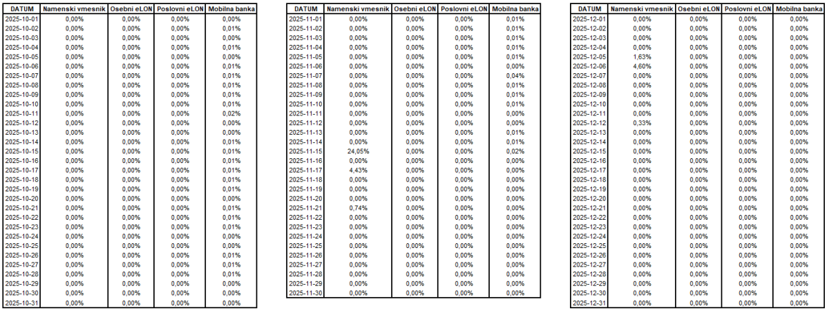 Dnevna statistika stopnje odziva z napako namenskega vmesnika, Osebni eLON, Poslovni eLON in mLON